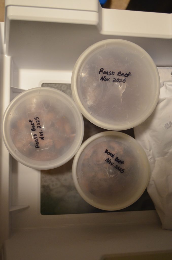 Use a product label or marker to note the date, type of meat, and cooking method — for example, “Roast Beef, March 2025.” Labeling helps you track how long it’s been stored so you can use it within the recommended storage time.